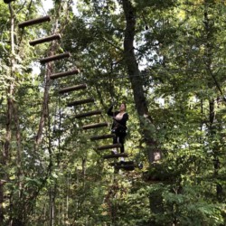 Bei angenehmem Wetter starteten wir nach kurzer Einweisung die ersten Parcours. Auf 60.000 Quadratmetern und insgesamt 147 Elemente in 9 Parcours kann man sich gut austoben. Dank unterschiedlicher Schwierigkeitsgrade ist für jeden die passende Strecke dabei.