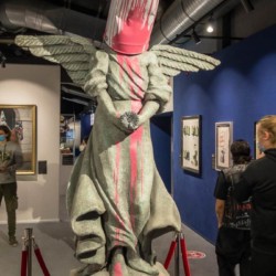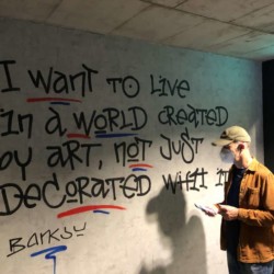 Wir waren auf jeden Fall von der Zahl der Graffitis, Fotografien, Skulpturen, Videoinstallationen und Drucken begeistert – auch, wenn die Ausstellung nicht vom Künstler selbst autorisiert war. Am Ende hatten unsere Schüler:innen noch die Gelegenheit ihre eigene Kreativität an einer Wand oder auf ihrem eigenen Hoodie/T-Shirt unter Beweis zu stellen.